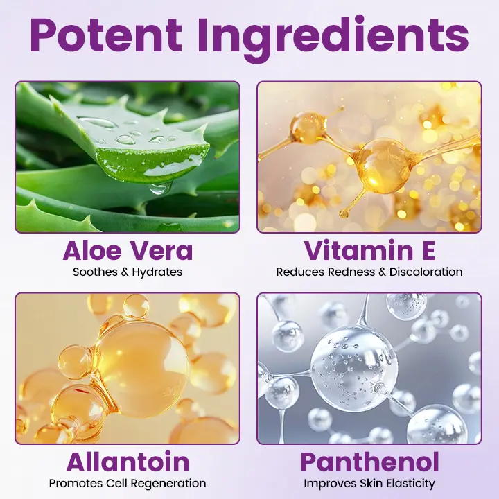 ✅ ایلو ویرا - سکون بخش اور ہائیڈریٹس: ایلو ویرا اپنی قدرتی شفا بخش طاقت کے لیے بڑے پیمانے پر جانا جاتا ہے۔ اینٹی آکسیڈنٹس اور وٹامنز سے بھرپور، یہ جلن والی جلد کو پرسکون کرتا ہے، خشکی کو کم کرتا ہے، اور دیرپا ہائیڈریشن فراہم کرتا ہے - جس سے داغ ٹھیک ہونے کے لیے مثالی ماحول پیدا ہوتا ہے۔